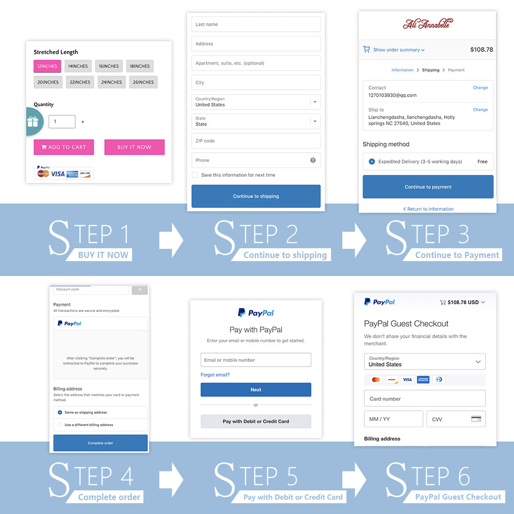 6.Arrive at PayPal Guest Checkout page and fill the card information